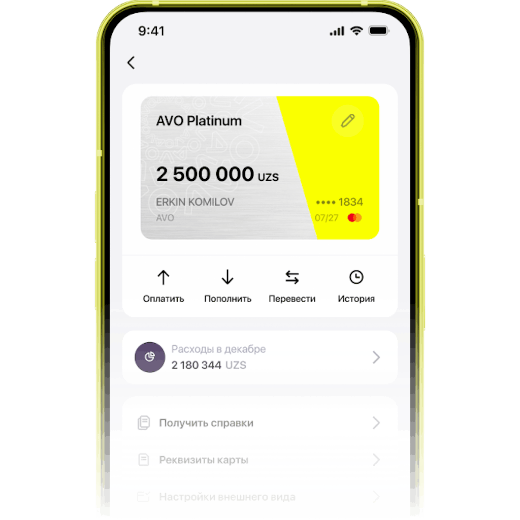 Получите до 100 млн сумов — без залога и поручителей. Оформите кредитную карту AVO platinum не выходя из дома