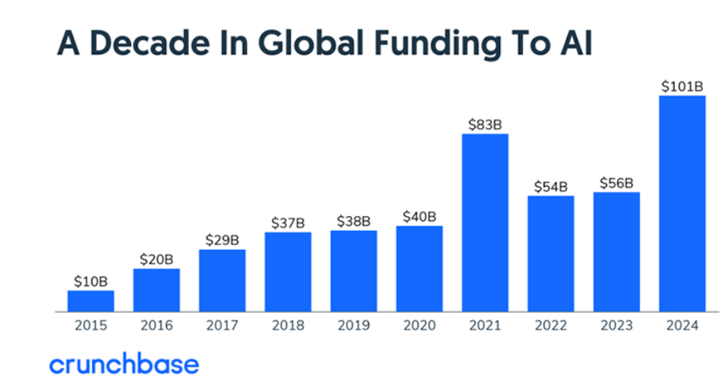 В 2024 году стартапы, которые соединяют технологии и финансы, привлекли $314 млрд. По статистике Crunchbase это на 3% больше, чем в прошлом году.