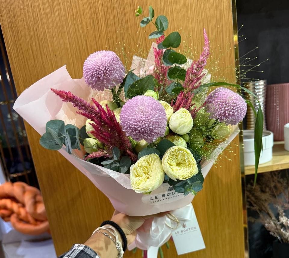 Премиальная студия флористики. В сентябре здесь можно встретить тюльпаны и каллы — даже вне сезона. Выбор цветов и декора большой. Цены выше среднего, но по запросу соберут букет и за 200 000 сумов.