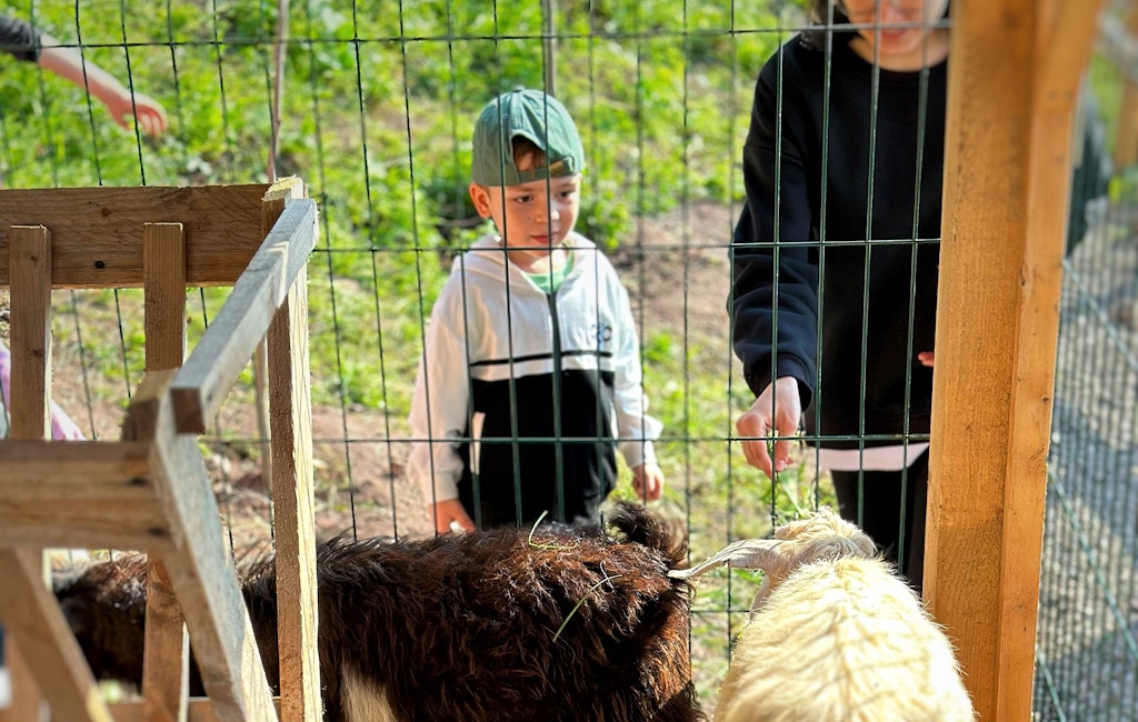 Но что здорово — много интересных активностей для детей. Есть открытая детская площадка с качельками, карусельками для малышей лет до четырёх — она бесплатная. Для детей постарше — контактный зоопарк, канатка, тюбинг (с 6 лет) — это катание на надувных ватрушках.