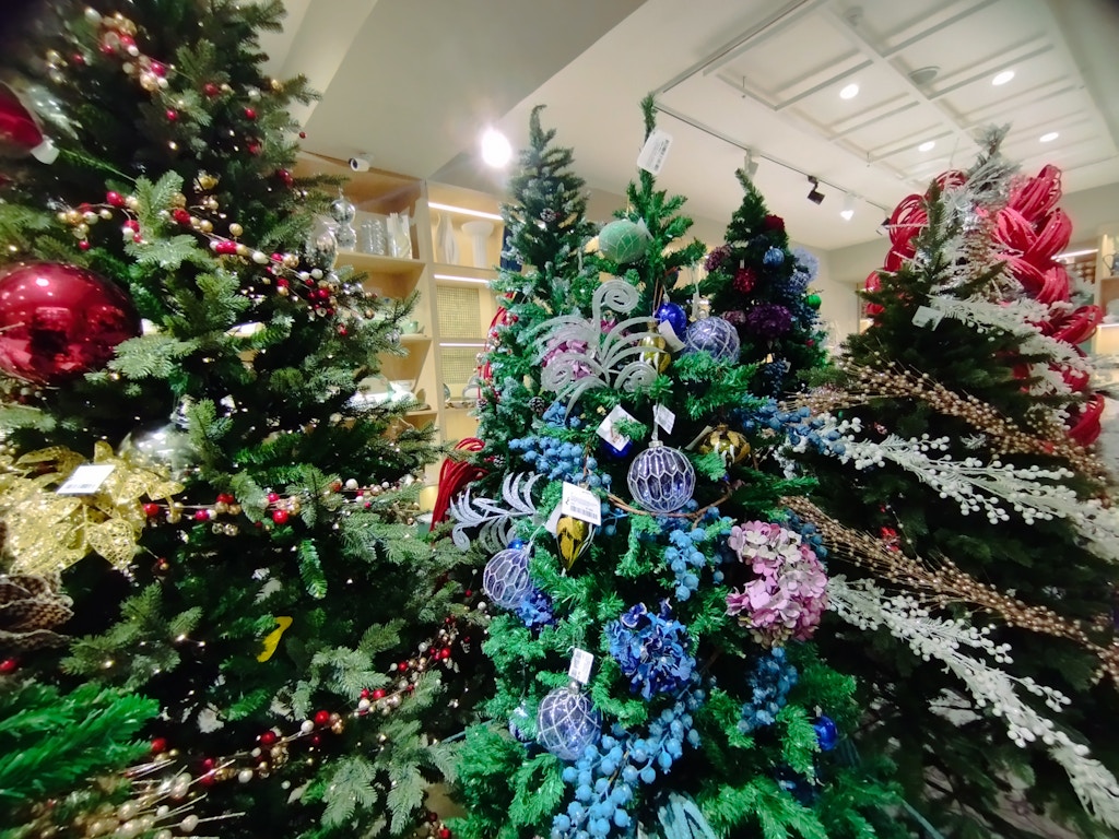 Самый яркий по разнообразию товаров, ценовому диапазону и праздничности — это Art House. По сути, он похож на Home Market, но чуть меньше и гораздо уютнее. Кажется, что тут не меньше товаров, но они менее масс-маркетные. Что касается цен, то на некоторые товары они повыше, например, на ёлки нижний предел — 3 млн, на миниатюрные ёлки — 170 000, на хвойные венки — 330 000.