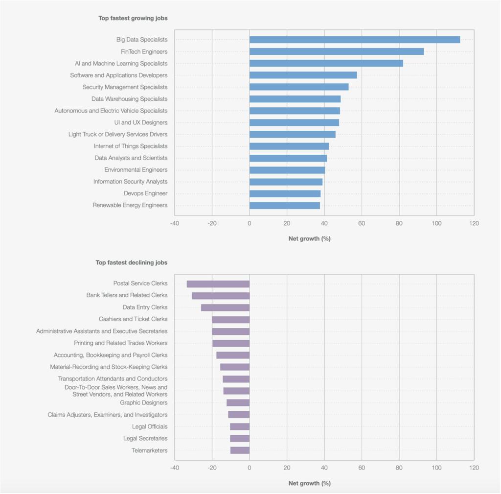 - Зелёный переход : стремление снизить ущерб окружающей среде также внесёт свой вклад в изменения рынка труда.