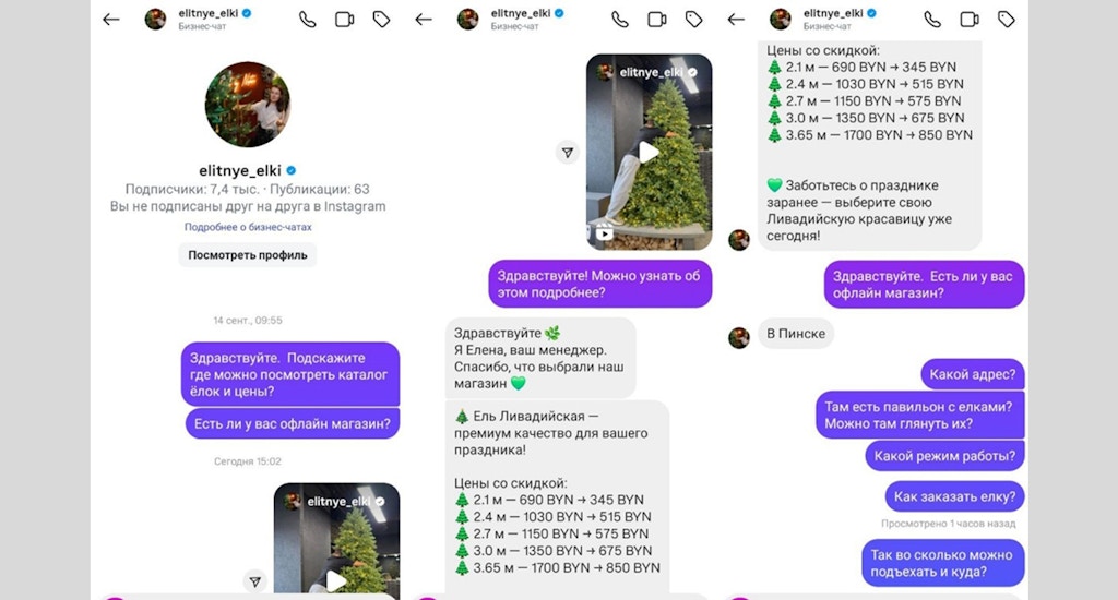 Нашла в Инстаграме магазин, проверила страницу, задала вопросы, получила вежливые ответы. Всё выглядело как хороший сервис. Ёлки у них стоили дороже миллиона, но я уговорила найти мне вариант подешевле. Я оплатила переводом и всё — переписка исчезла, на сообщения не отвечают…