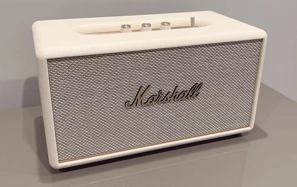 Поэтому, на моей тумбочке появилась колонка от Marshall — Stanmore III. Сегодня её можно купить примерно за 5 млн. сумов. Это достаточно популярная модель и найти её можно почти на любом маркетплейсе или в специальных музыкальных магазинах. Вот как она выглядит: