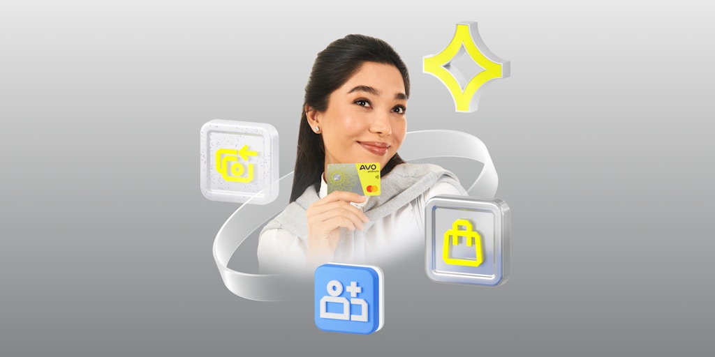 Endi AVO platinum kredit kartasi bilan faqatgina xaridlarga pul sarflamay, balki ishlab olishingiz ham mumkin. Kredit limiti yordamida amalga oshirilgan har bir xarid uchun sizga AVO bonuslarni taqdim etamiz, ularni ilovaning o’zidayoq haqiqiy pullarga almashtirishingiz mumkin. Hammasi oddiy: 1 AVO bonus = 1 so’m.