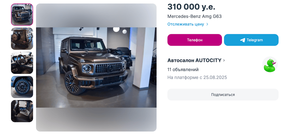 Ko‘plab xususiy platforma va avtosalonlar Mercedes-Benz G-Class’ni to‘g‘ridan-to‘g‘ri boshqa mamlakatlardan — ko‘pincha BAA, Yevropa yoki AQShdan olib kelib sotadi. Ularda yangisini ham, haydalganini ham topish mumkin; noyob versiyalar, tyuninglangan AMG yoki BRABUS’lar ham uchraydi. Bunday salonlarda narx va yetkazib berish muddatlari odatda moslashuvchanroq bo‘ladi, komplektatsiya tanlovi ham keng. Lekin, shuni yodda tutingki, kafolat va servis shartlari rasmiy dilerlarnikidan farq qiladi, shu sababli barcha tafsilotlarni oldindan aniqlab oling.