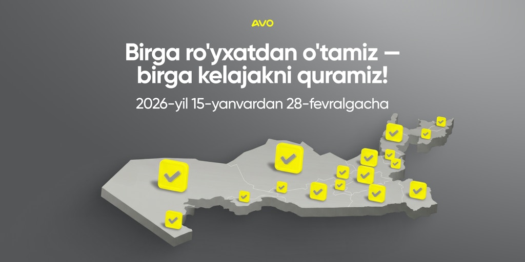 AVO bank O'zbekiston aholisini ushbu tadbirdan chetda qolmaslikka va ro'yxatga olish jarayonida faol ishtirok etishga chorlaydi: mamlakatimiz kelajagi shu kabi muhim qadamlar orqali barpo etiladi.